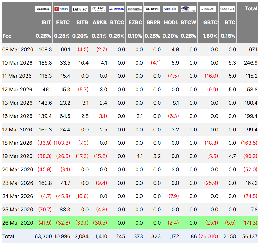 US Bitcoin ETFs saw significant outflows of $171 million on Thursday as market participants feared another weekend escalation in the US-Israel conflict with Iran.